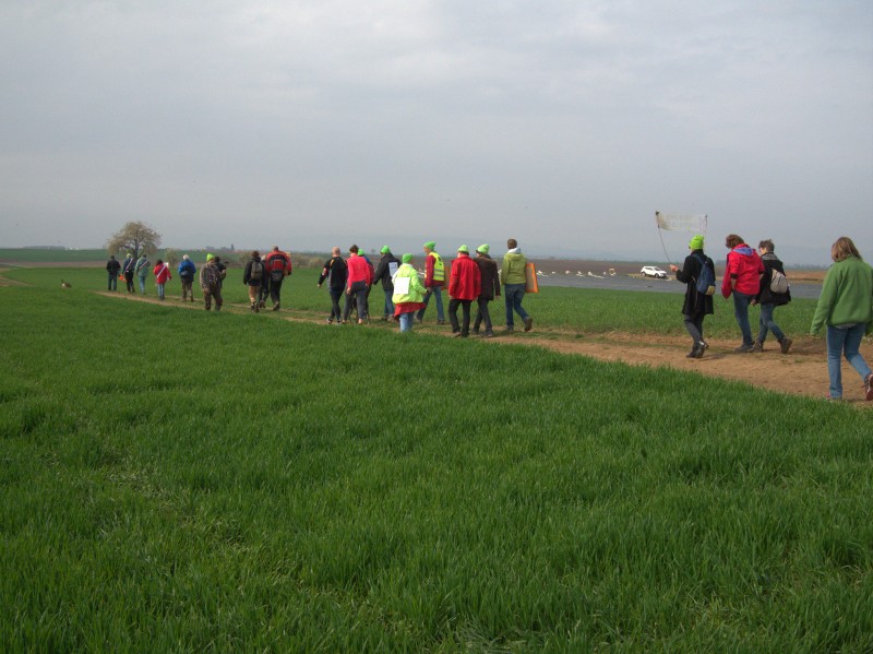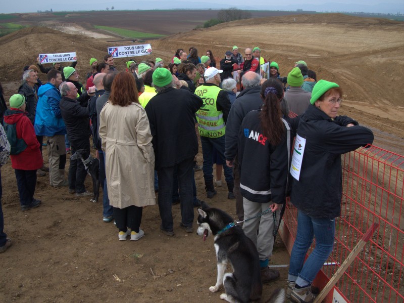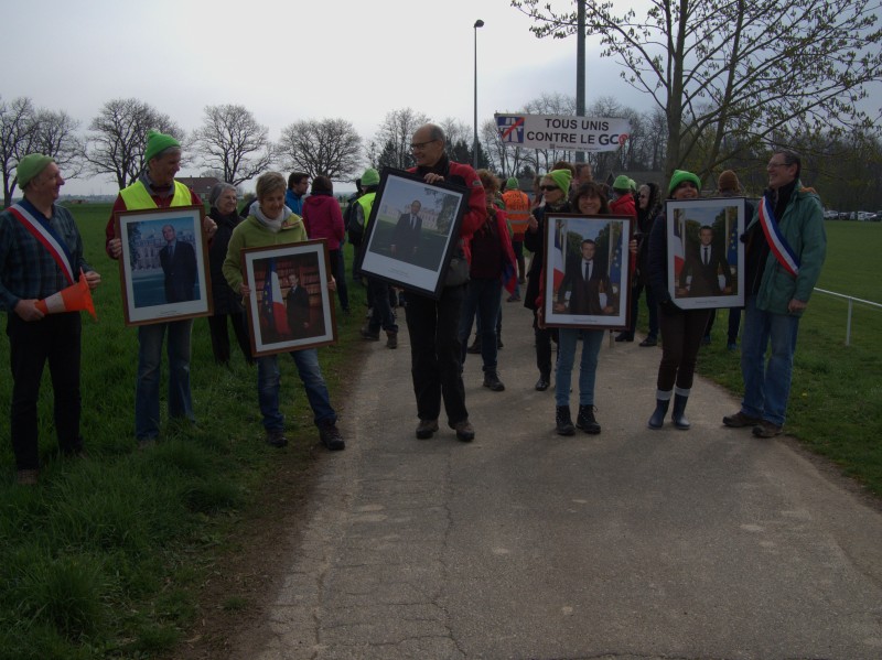 Ce dimanche 7 avril 2019, des membres du collectif GCO NON MERCI et les maires de Pfettisheim et Greisheim/Souffel se sont retrouvés pour une promenade un peu spéciale : ils ont montré (symboliquement) les dégâts causés par le GCO au président de la République actuel , mais aussi aux anciens chefs de l’Etat qui ont contribué à la mise en œuvre de ce projet.Sous la présidence de Jacques Chirac, celui-ci avait déclaré « Notre maison brûle et nous regardons ailleurs. La nature, mutilée, surexploitée, ne parvient plus à se reconstituer, et nous refusons de l’admettre. L’humanité souffre. Elle souffre de mal-développement, au Nord comme au Sud, et nous sommes indifférents. La Terre et l’humanité sont en péril, et nous en sommes tous responsables » et pourtant malgré ce beau discours, rien n’a véritablement été fait pour inverser la tendance… et à cette époque, le projet de GCO est ressorti des cartons.